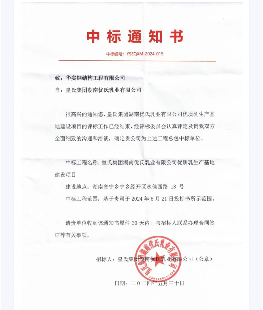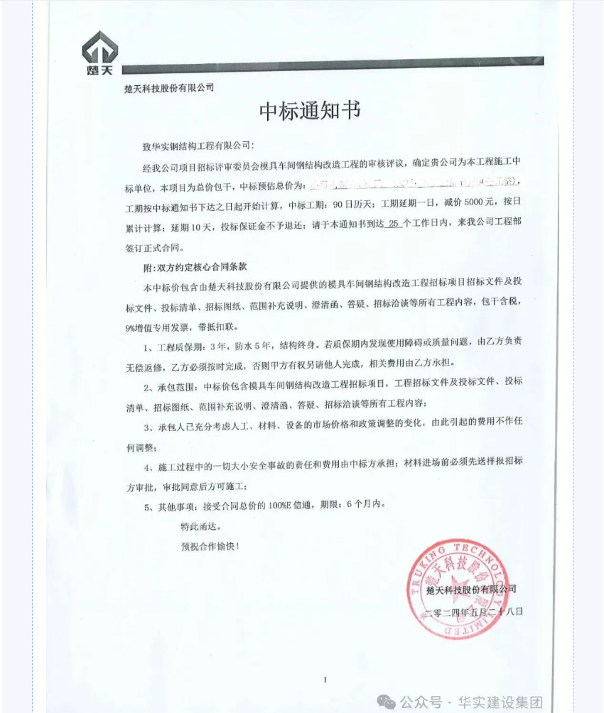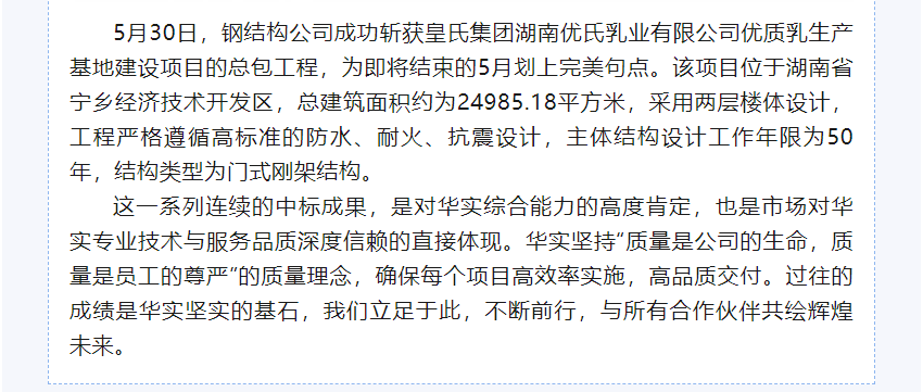 捷报频传!华实建设集团钢结构公司两周连中四标